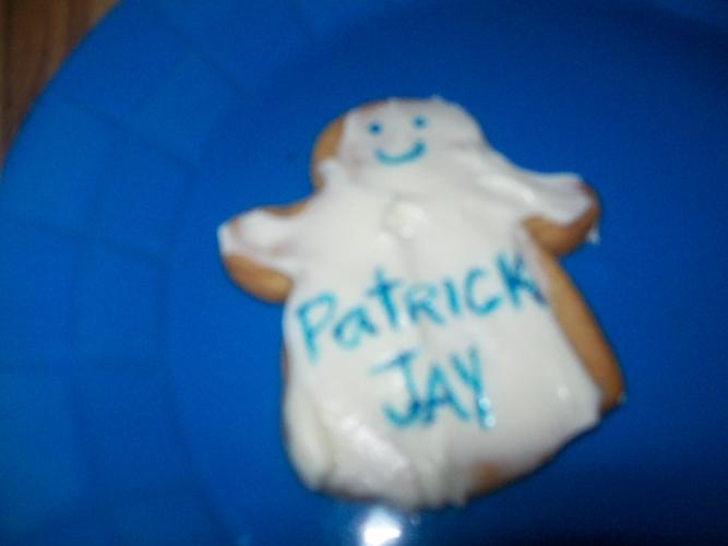 Here is pic of angel suger cookie made to soround LOgan's angel cake Happy 1st Birthday Logan thank-you for your support during this year        Bless you Logan Berg's family